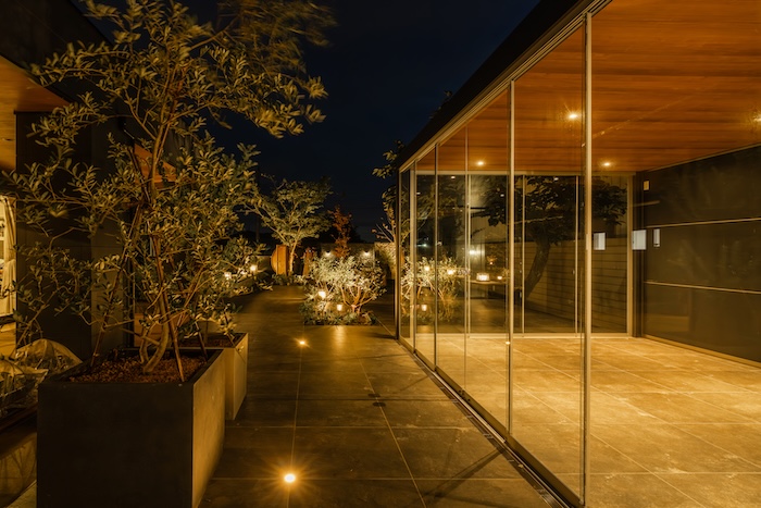 それぞれのスペースをナチュラルに繋げる視覚的な効果はもちろん、ガーデンでの夏場の温度上昇をやわらげる効果も期待されます。