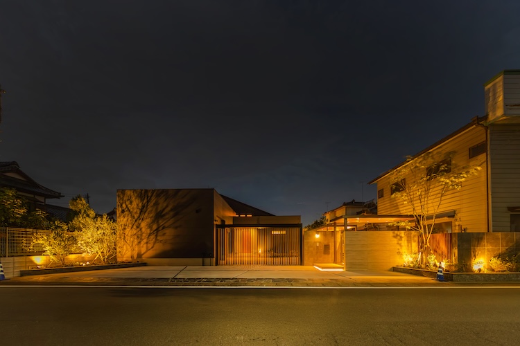 ダークグレーの門袖にはゴールドの切り文字表札が上品に添えられ、ここがホテルでは無く邸宅であることに気づかされるようです。