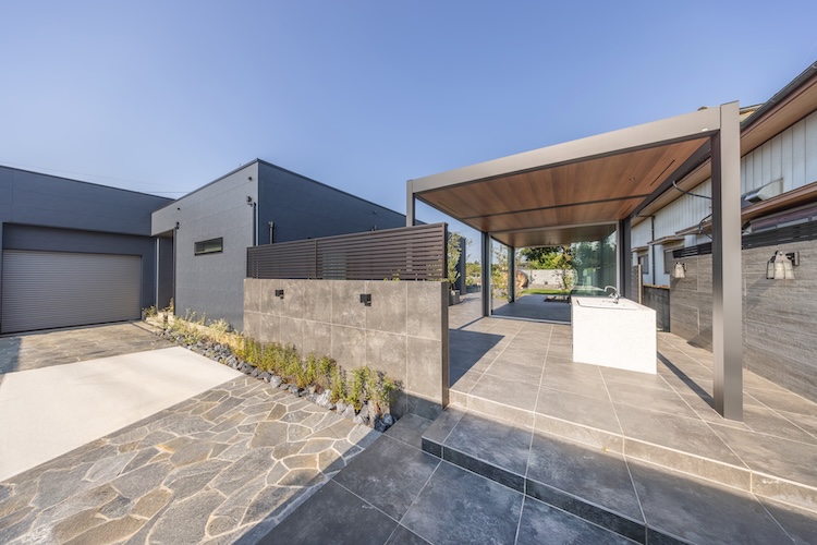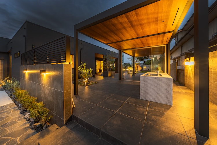 都内マンションから思い切って郊外の戸建て住宅へと移住を決めた大胡田様。広い土地を活かし、お庭を生活に取り込んだ此処でしか味わえない暮らし。そんなコンセプトにホテルライクなデザイン性がプラスされ、理想のエクステリアが叶えられていきます。