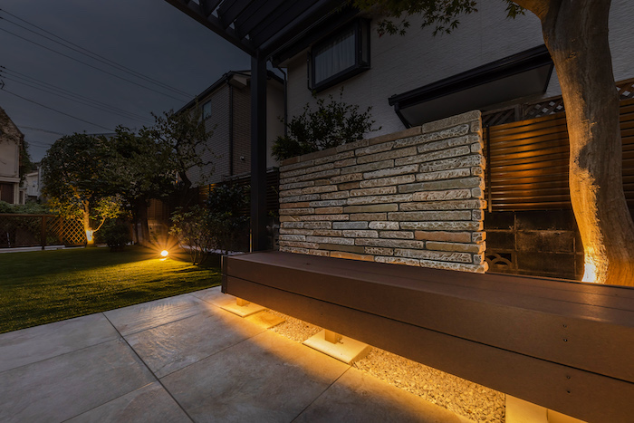 照明は「ただ明るくする」ための設備ではなく、暮らしを豊かにするデザインのひとつ。昼間のにぎやかさとは違う、家族がゆったり語り合えるような上質なひとときを紡ぐナイトガーデンが完成しました。