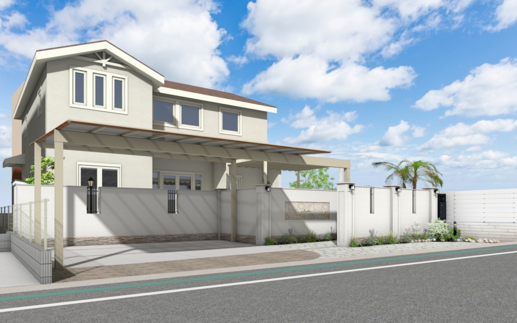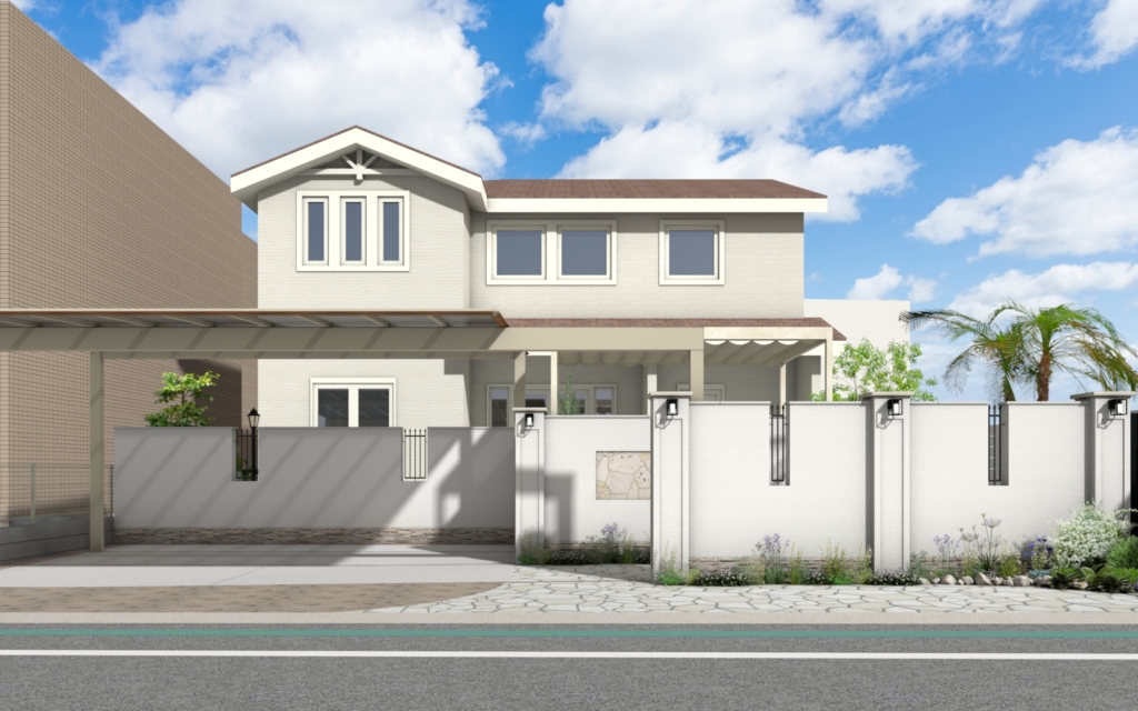 クリームカラーで統一した上品で高級感のあるクローズエクステリア