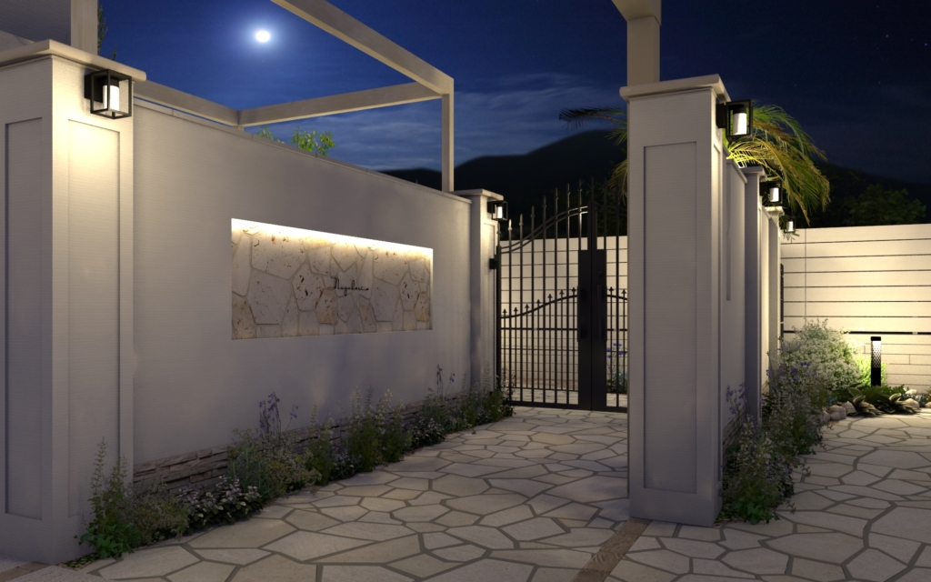 自然石を敷き詰めてラグジュアリ-なファサ-ドに!