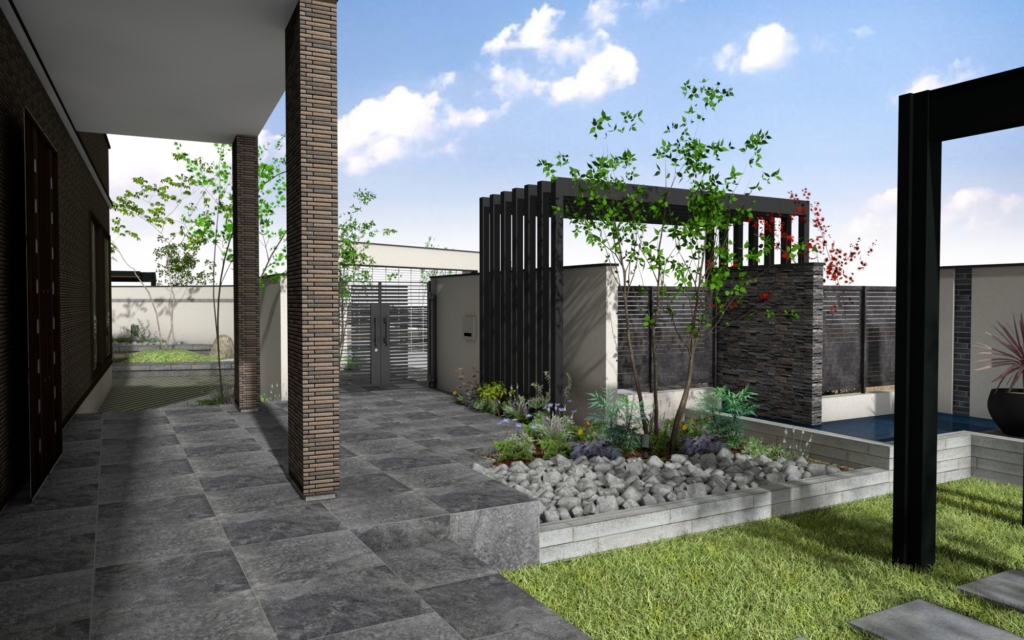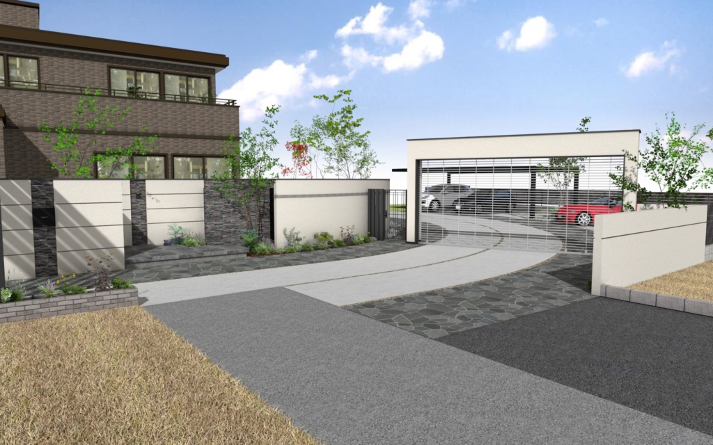 直線と孤を組み合わせた自然あふれる和モダンエクステリア