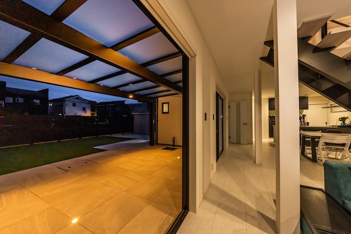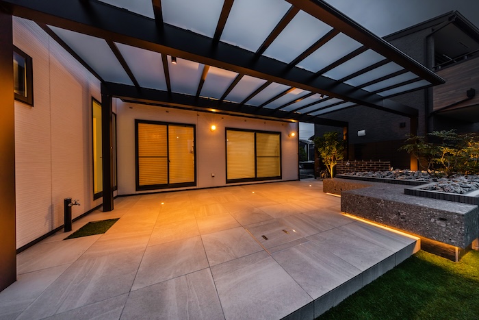 この経験を活かして、ゆったりと広がるテラス屋根にはエフルージュFIRST( YKKap)を設置し、リビングの延長のような快適な空間を計画しました。