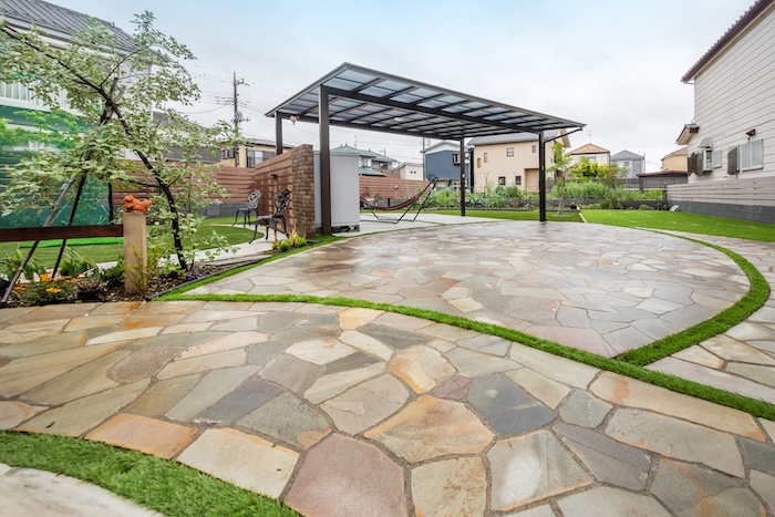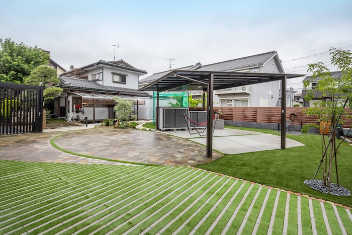 駐車スペースを「庭の主役」にした多目的なエクステリア計画