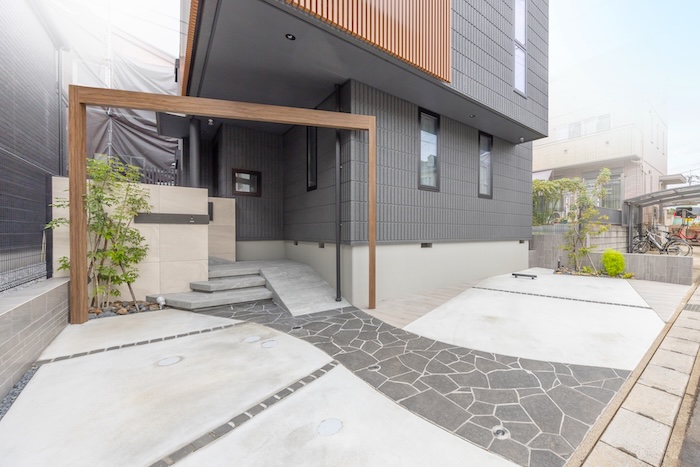 ゲートフレーム×大判タイル門袖で作るダイナミックなエクステリア ~井上様邸~